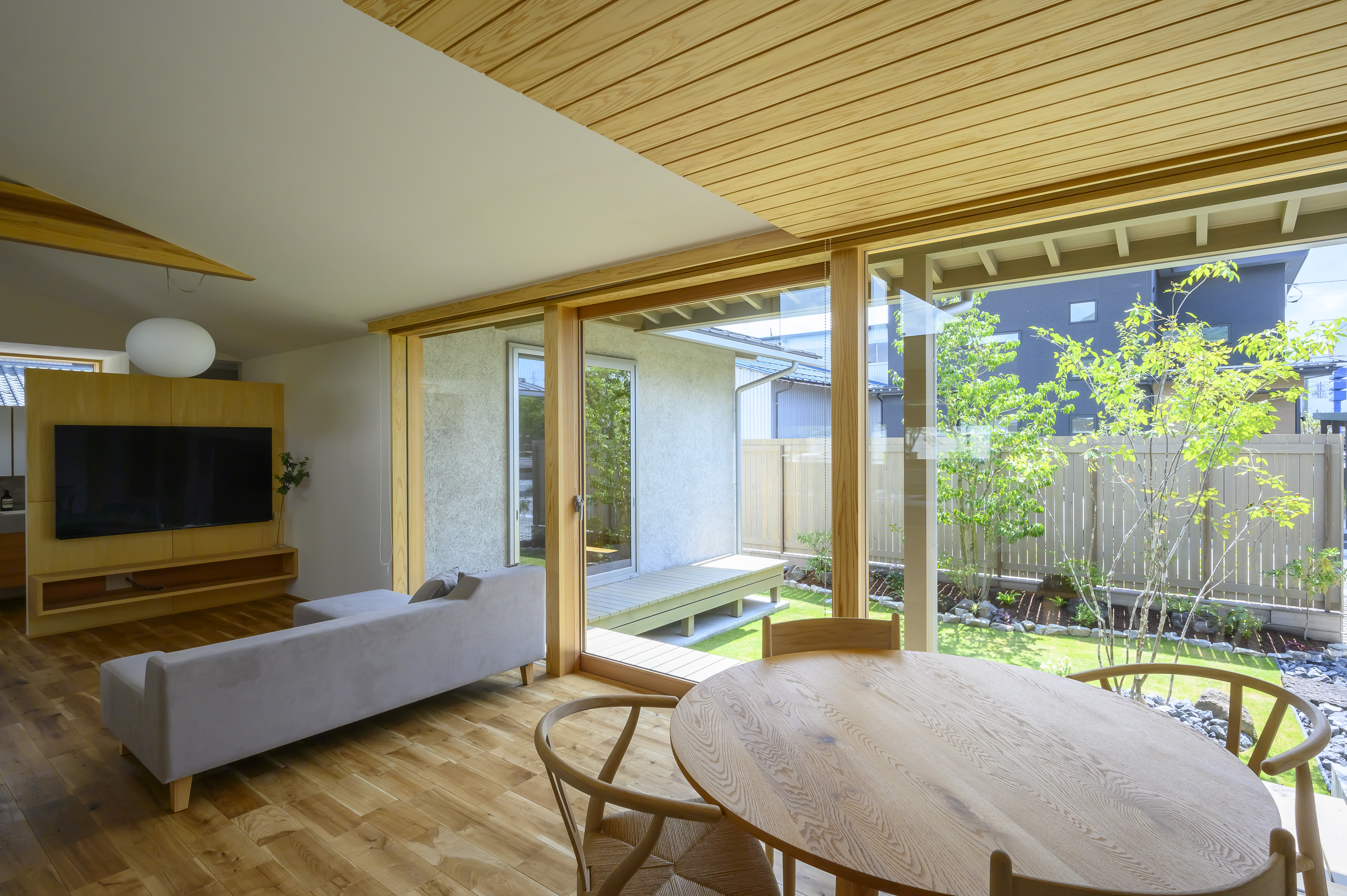 空と庭、光と風に包まれながら、静かで穏やかな時間が流れる、「余白」を愉しむ住まいが完成しました。