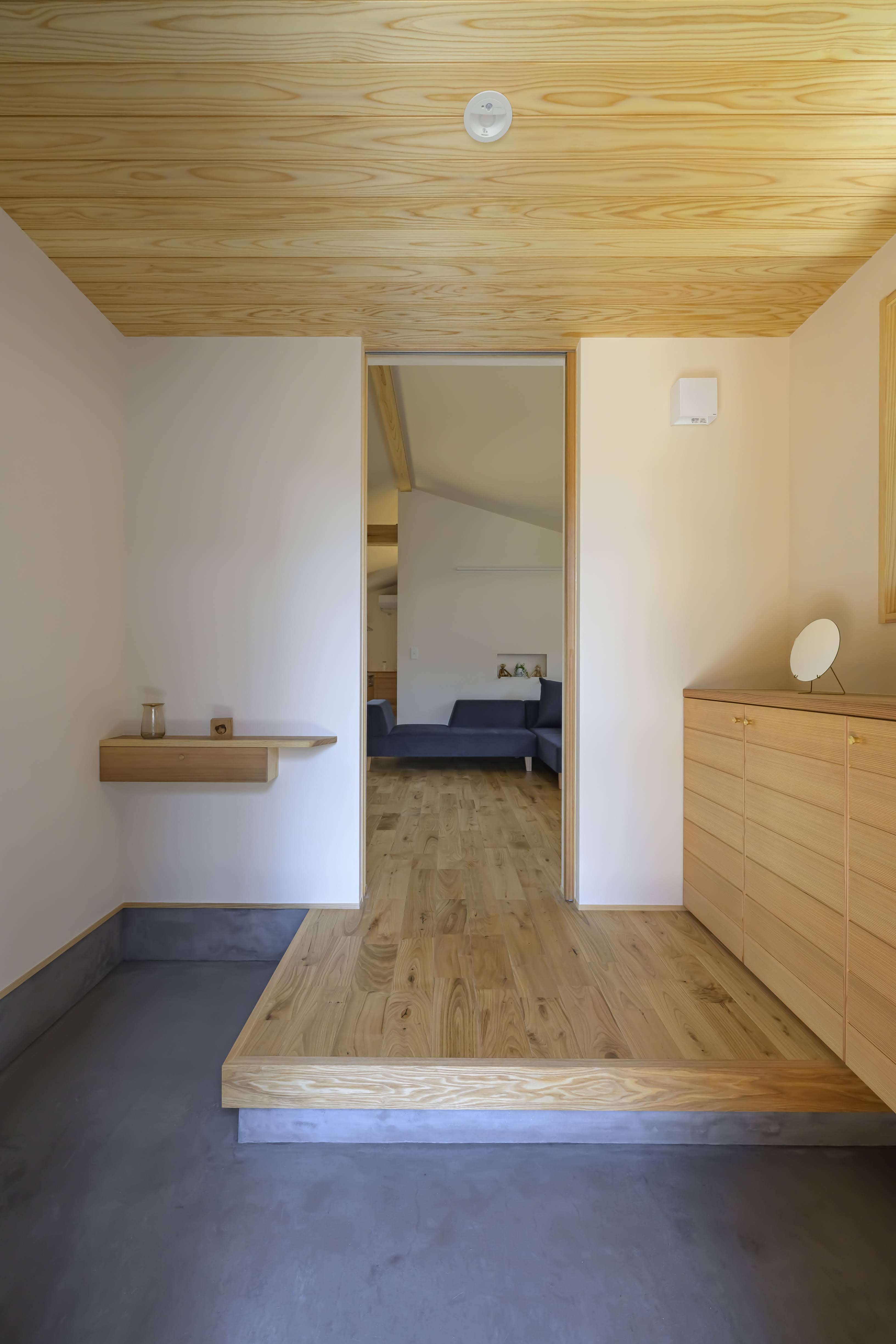五感で感じるぬくもり: 玄関を開けた瞬間に広がる木の香りと、自然素材の温かみを感じるデザインです 。