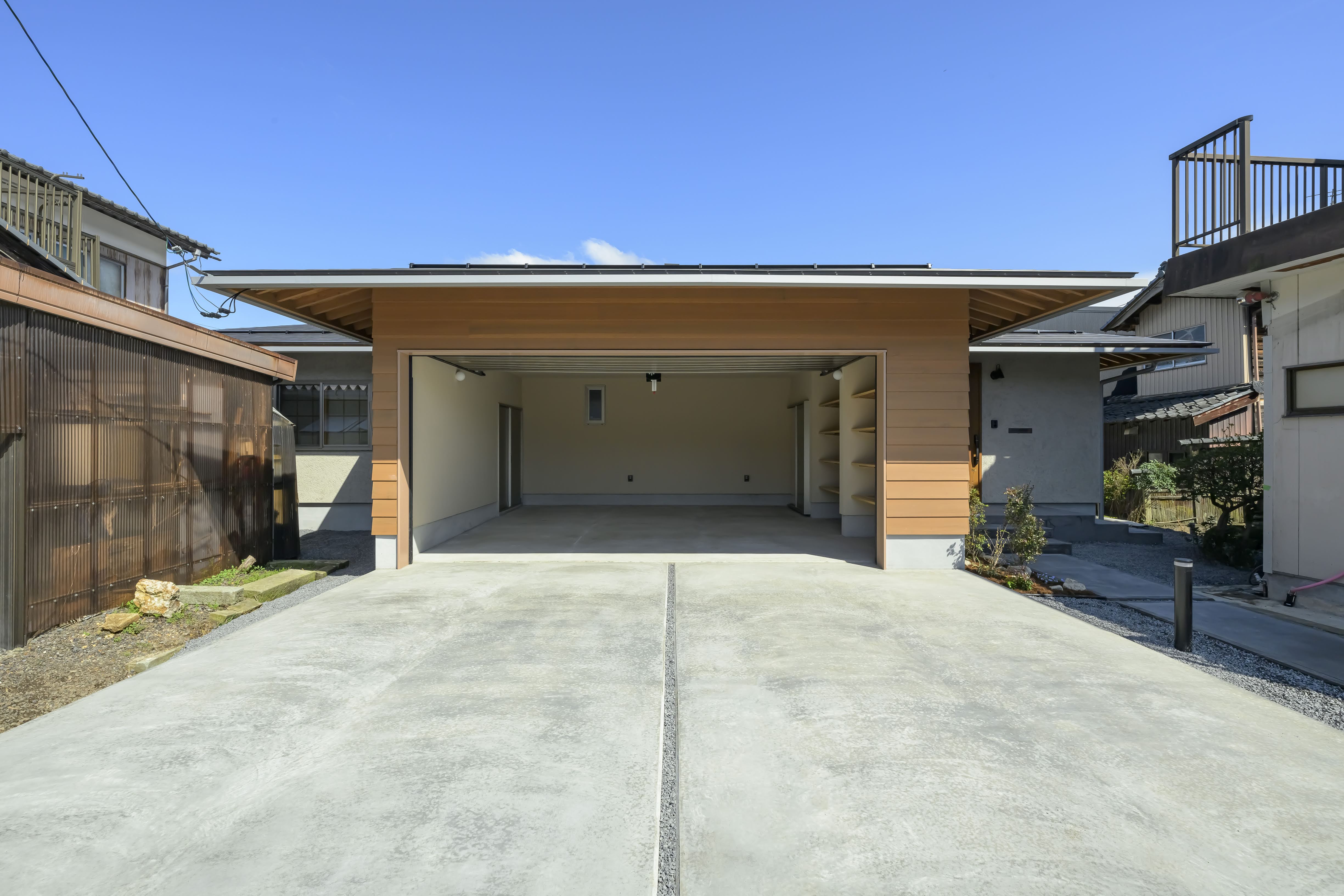 インナーガレージ: 雪に濡れずに車から玄関まで移動可能。買い物袋を持っていても安心です 。